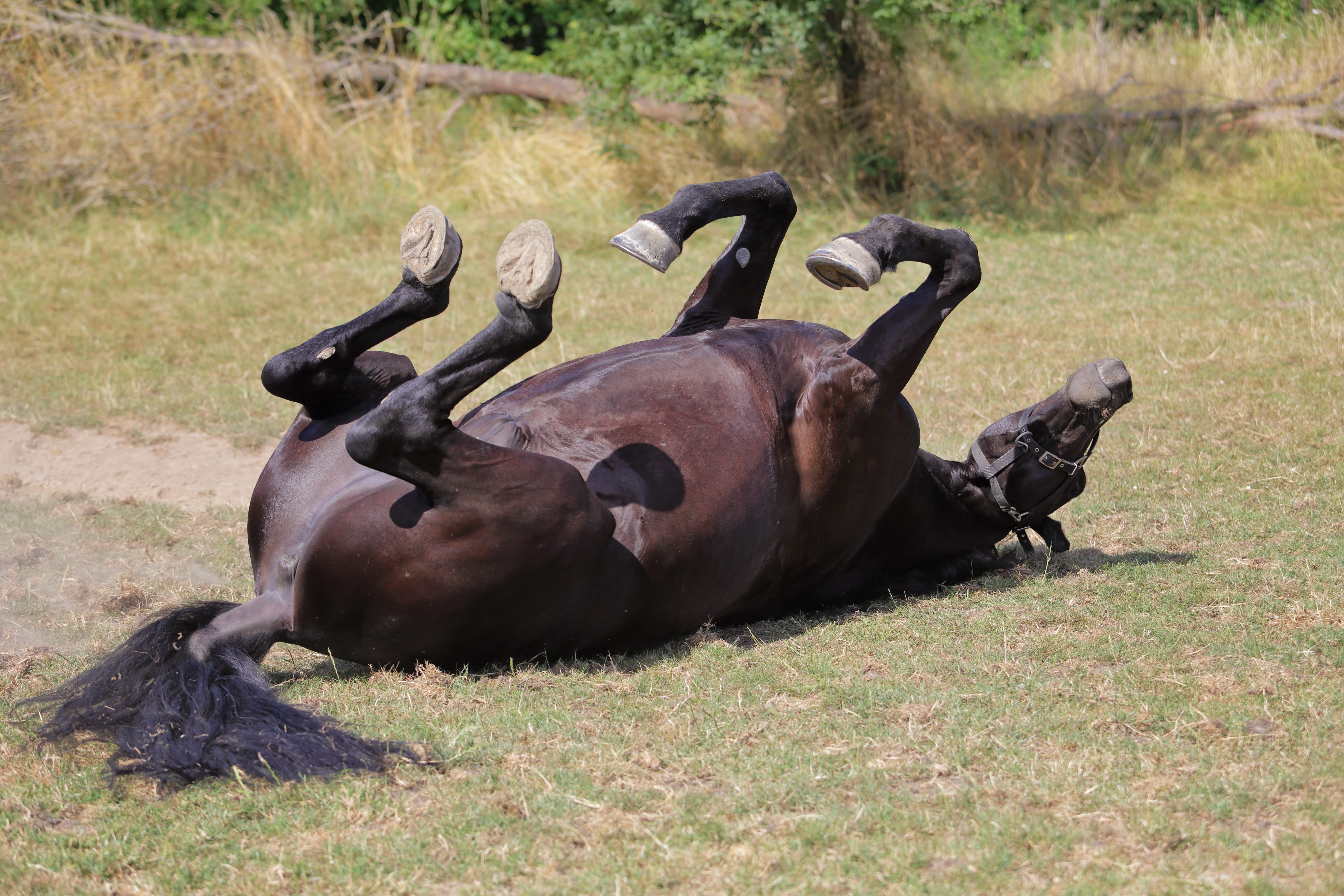 Horses will get colic just like a baby. It is usually caused by a change in diet, a new feed, different batch of hay, basically something they ate. They start rolling on the ground and just generally act uncomfortable. Horses unlike babies will get a knot in their intestines which leads to even greater problems so you must keep them on their feet and walking. How do you know when they are ok? You have to listen out for the fart! So, you walk them in big circles until they fart. This can go on for hours.